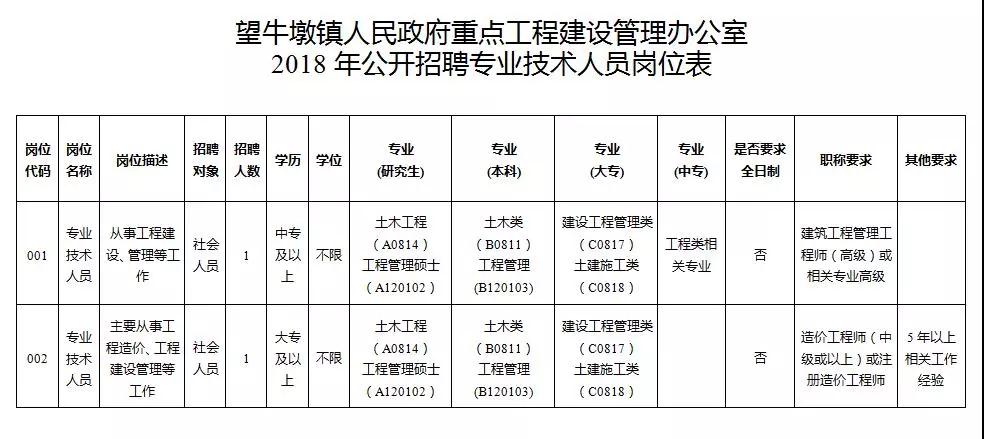 因工作需要,我镇人民政府重点工程建设管理办公室现面向社会公开招聘2名专业技术人员。现将有关事项公告如下: